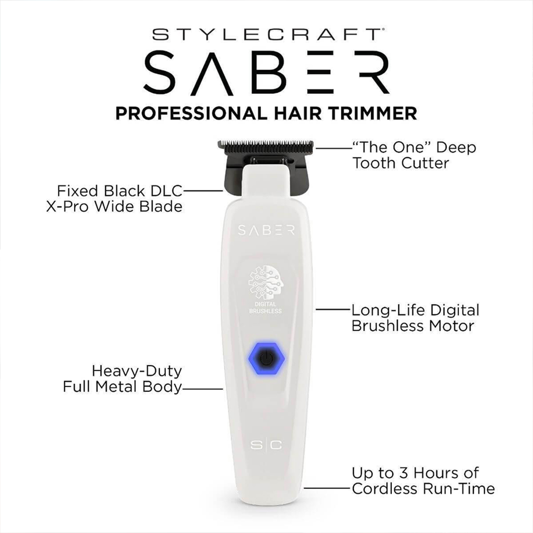 Оборудван с безчетков мотор с висок въртящ момент, тримерът Saber осигурява по-тиха, по-плавна и по-мощна работа в сравнение с класическите тримери. Моторът генерира по-малко топлина, което допринася за удължен живот и постоянна производителност дори при интензивна ежедневна употреба. Подстригва с лекота всеки тип косъм, като поддържа безупречна прецизност.